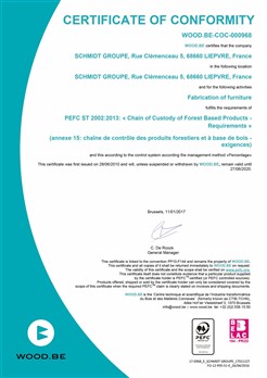 Certificat of conformity: « Chain of Custody of Forest Based Products -